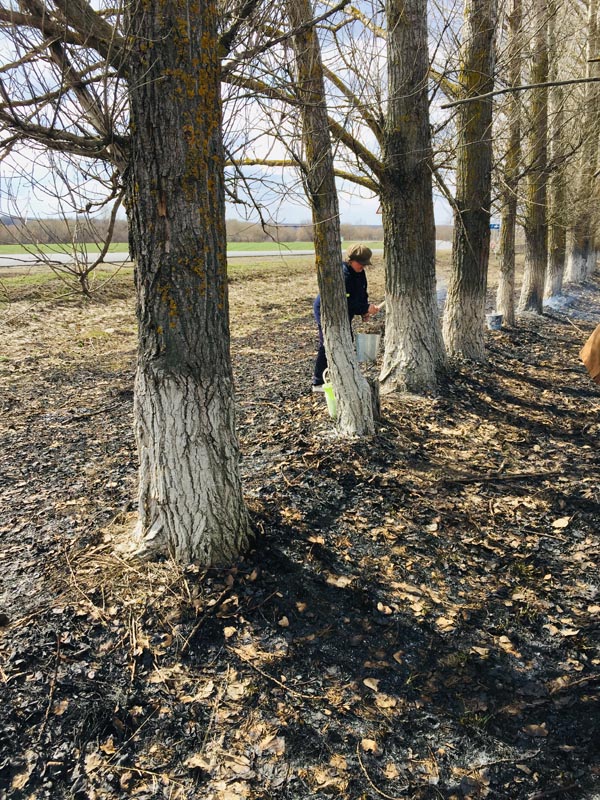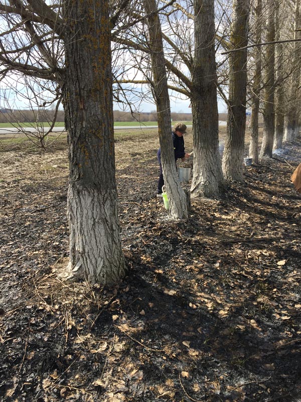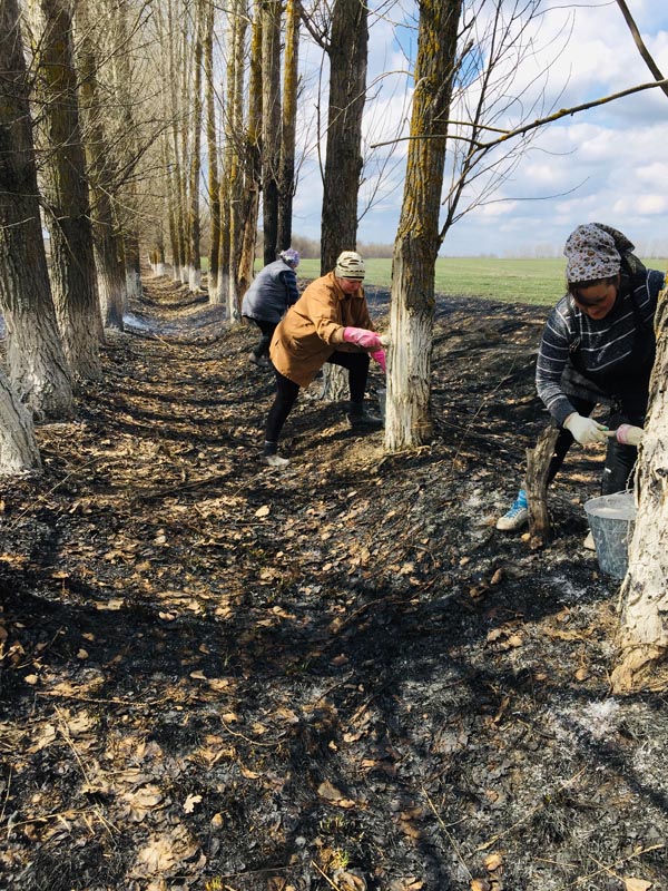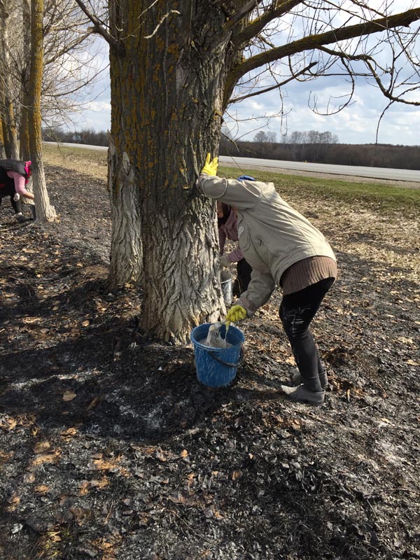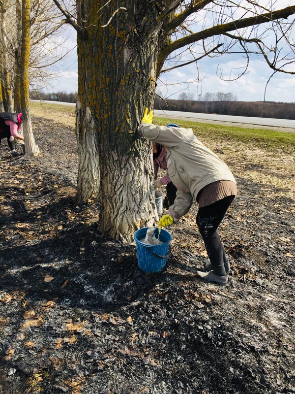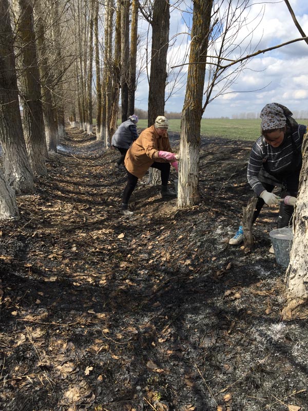 Побелка посадки, работники комплексного центра