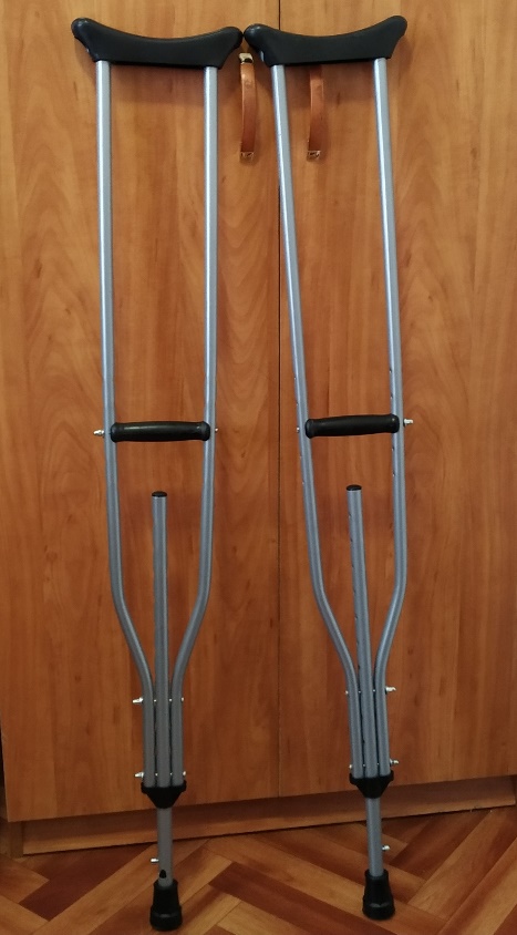 приспособление для реабилитации опорно-двигательного аппарата. Костыли изготовлены из легкого алюминиевого сплава, что значительно облегчает все изделия. Высота костылей регулируется через каждые 2,5 см. Высота захвата для руки регулируется через каждые 4 см. Надежная фиксация при регулировке высоты обеспечивается кнопочными замками. Костыли укомплектованы съёмными опорами под мышку и под руку, которые изготовлены из мягкого материала, легко подвергаются санитарной обработке. Съёмные резиновые наконечники обеспечивают хорошую устойчивость при ходьбе. Максимальная нагрузка - 100 кг.